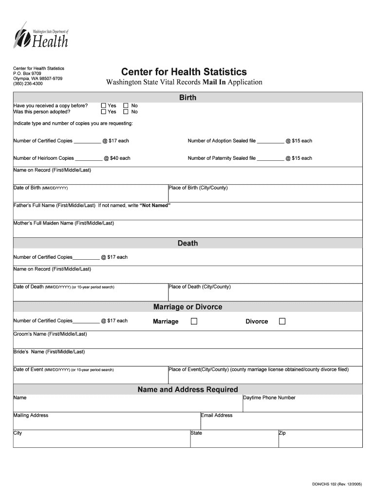 Filling out the Washington State Vital Records Mail In Application requires careful attention to detail. Here’s a step-by-step guide to ensure accuracy: