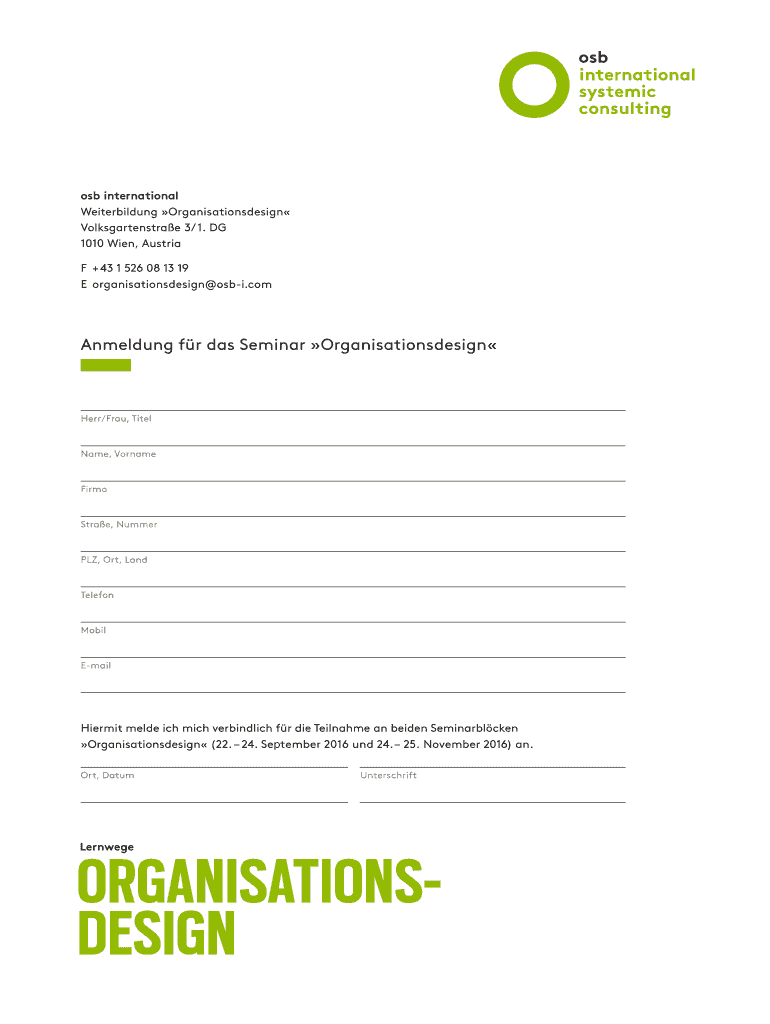 Holen Sie sich kostenlos Anmeldung f r das Seminar Organisationsdesign - osb international
