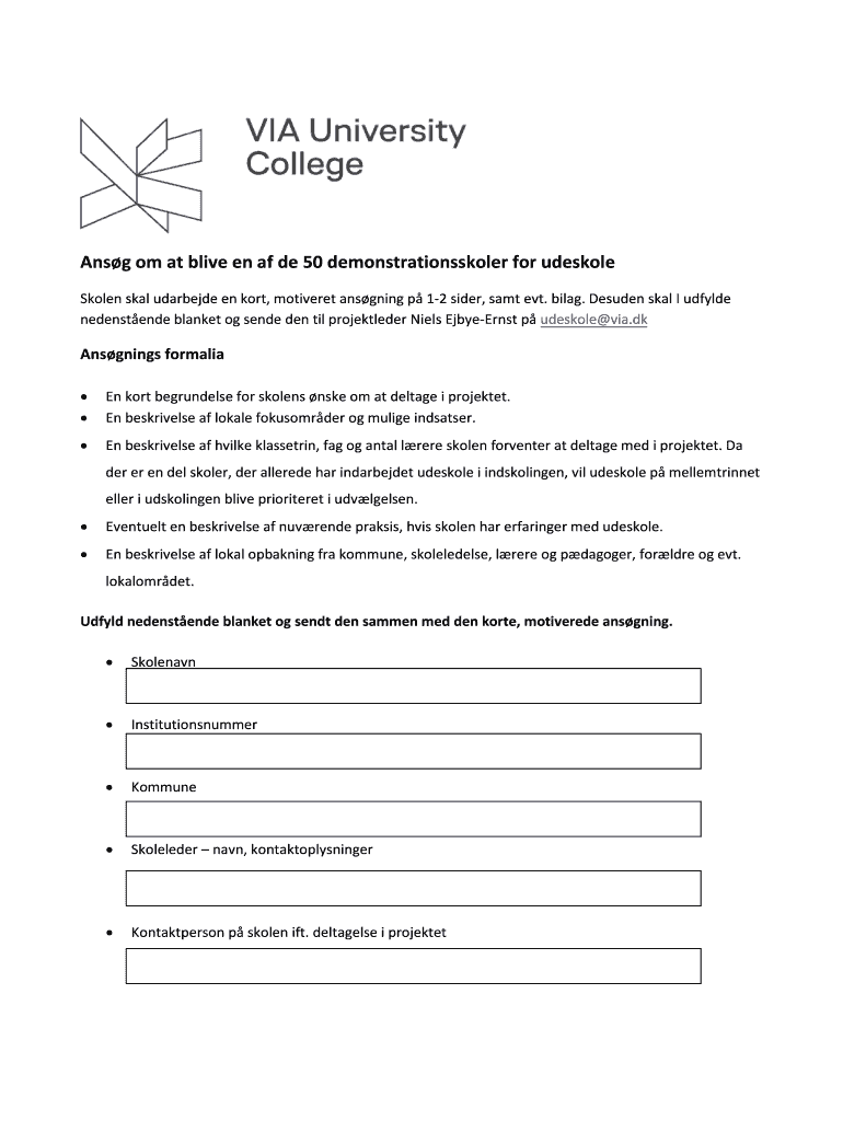 Get the free Ans g om at blive en af de 50 demonstrationsskoler for udeskole - via