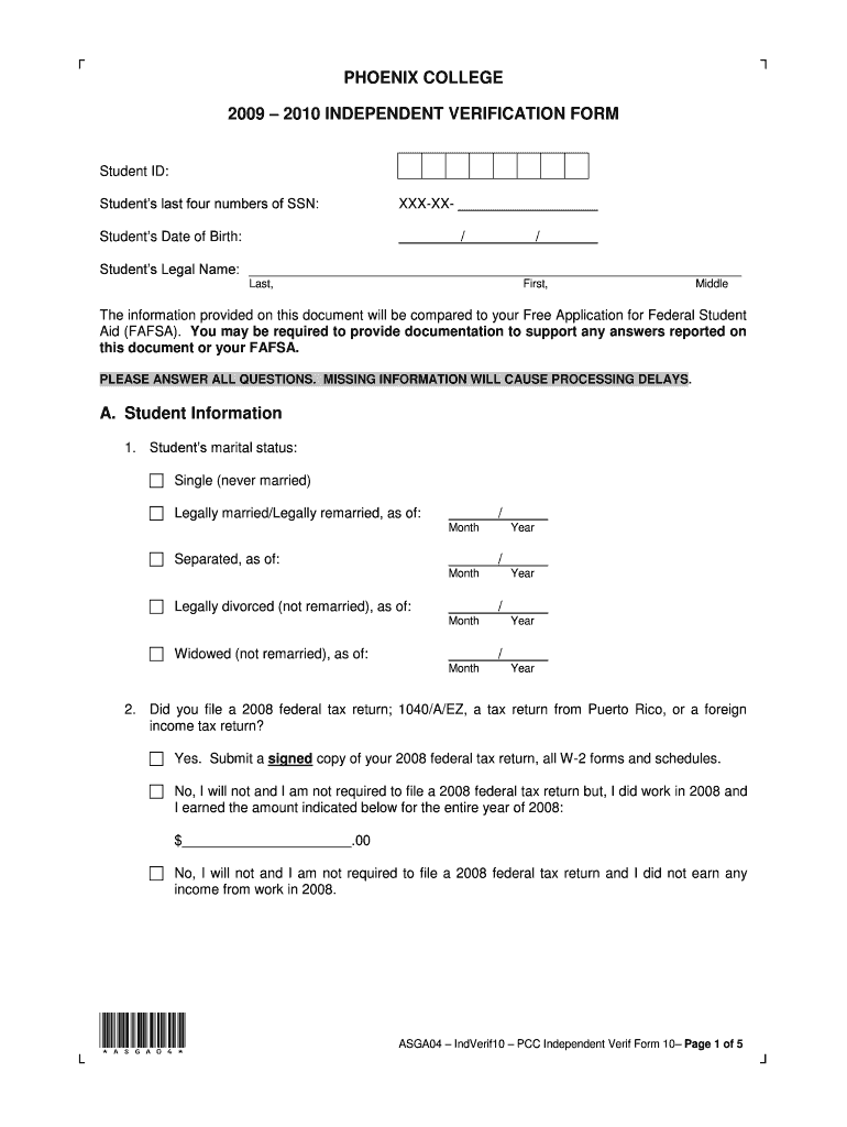 Get the free Phoenix College Independent Verification Form