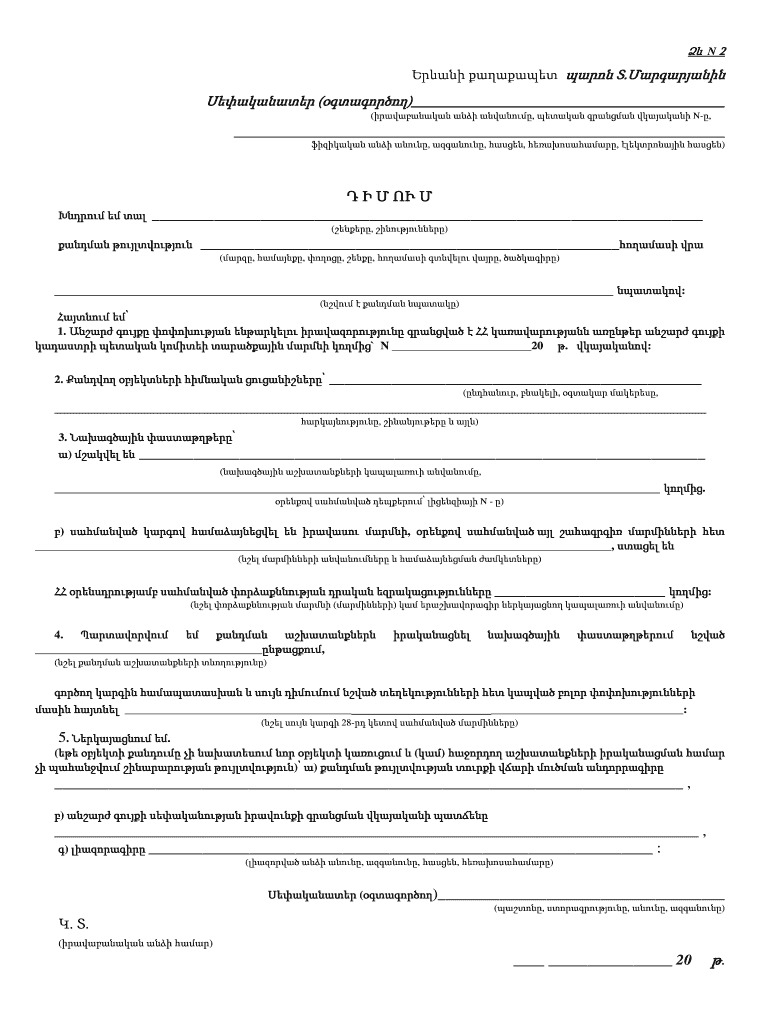 Yes, you can. With the pdfFiller mobile app, you can instantly edit, share, and sign n 2 - yerevan on your iOS device. Get it at the Apple Store and install it in seconds. The application is free, but you will have to create an account to purchase a subscription or activate a free trial.