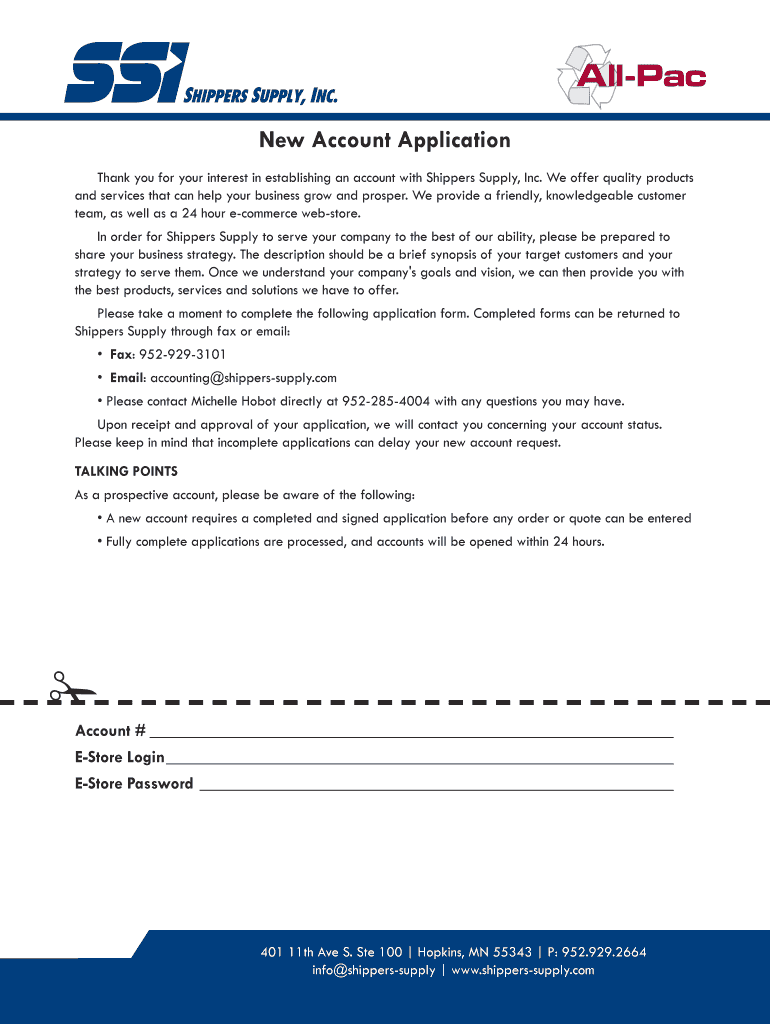 Get the free New Account Application - bShippersb bSupplyb