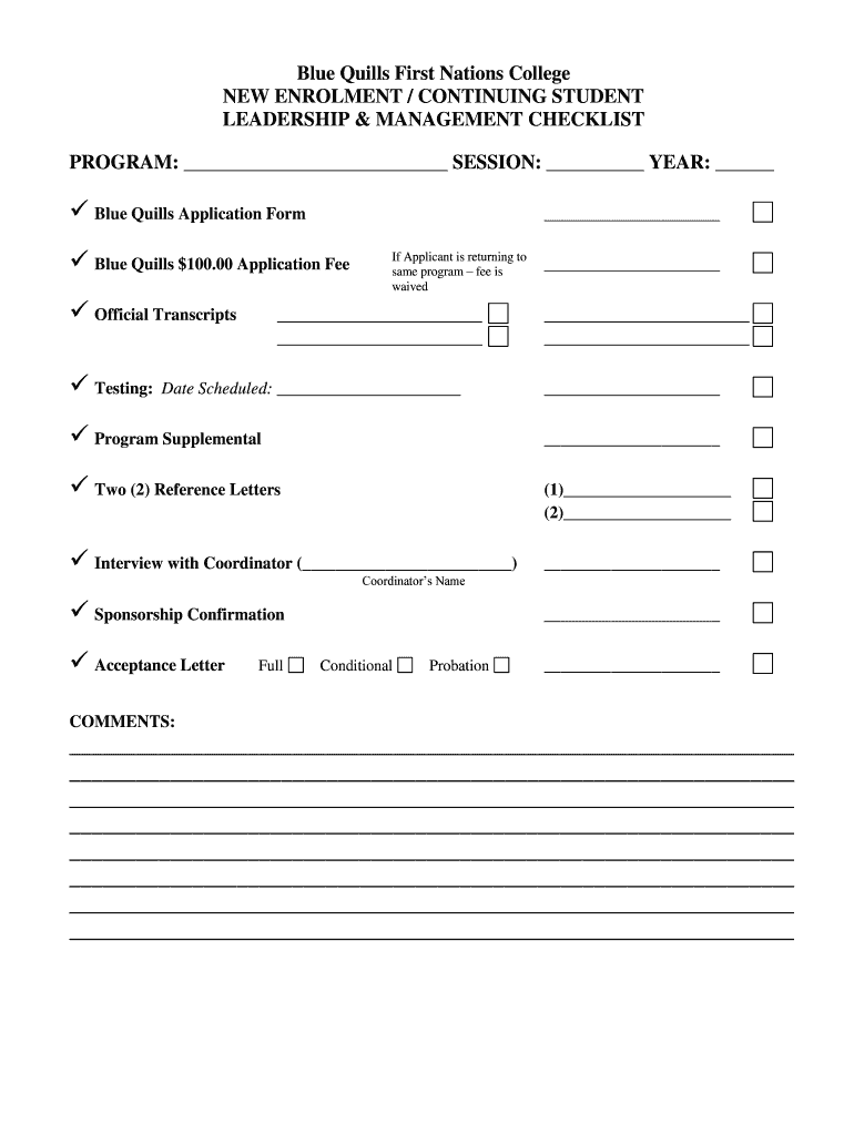 Blue Quills First Nations College NEW Enrollment / CONTINUING STUDENT LEADERSHIP & MANAGEMENT CHECKLIST PROGRAM: SESSION: YEAR: