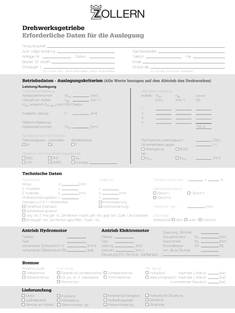 Holen Sie sich kostenlos Drehwerksgetriebe Erforderliche Daten fr die Auslegung - zollern