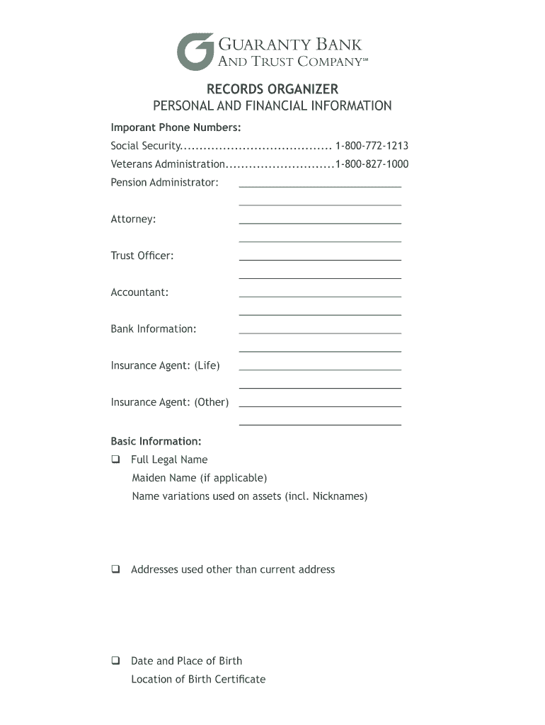 Individuals can fill out Records Organizer Personal and by entering their personal and financial information in the provided sections.