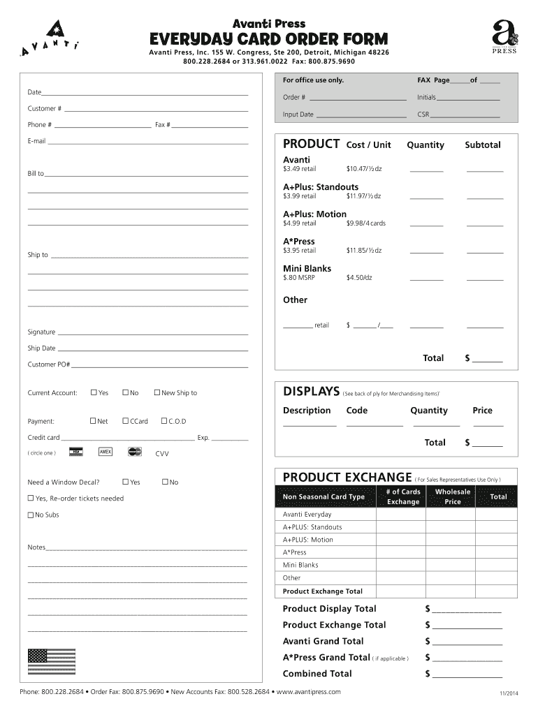 Av anti Press EVERYDAY CARD ORDER FORM Av anti Press, Inc. 155 W. Congress, Ste 200, Detroit, Michigan 48226 800.228.2684 or 313.961.0022 Fax: 800.875.9690 For office use only. Date Customer # FAX