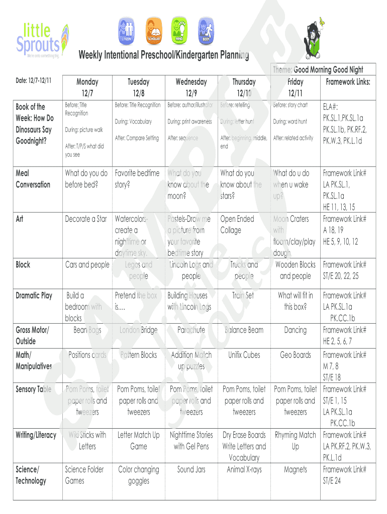 P L E Weekly Intentional Preschool×Kindergarten Planning Date: 12×712/11 Book of the Week: How Do Dinosaurs Say Goodnight? Monday 12×7 Before: Title Recognition During: picture walk After: T×P/S