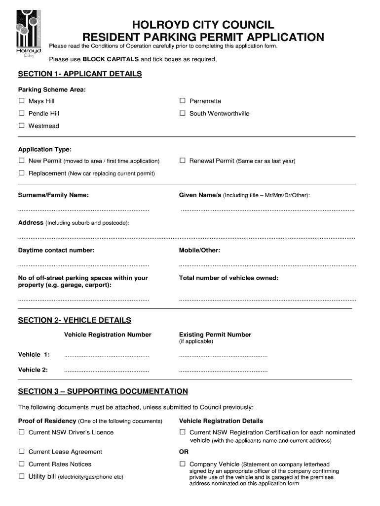 How to fill out AU Resident Parking Permit Application - Holroyd