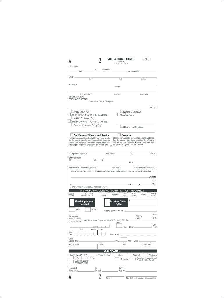 How to fill out the alberta violation ticket