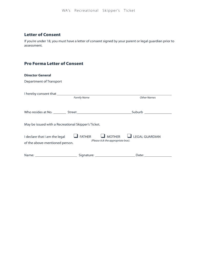 Was R e area ti on l S k I paper s Ti c k et Letter of Consent If you're under 18, you must have a letter of consent signed by your parent or legal guardian prior to assessment. Pro Forma Letter of