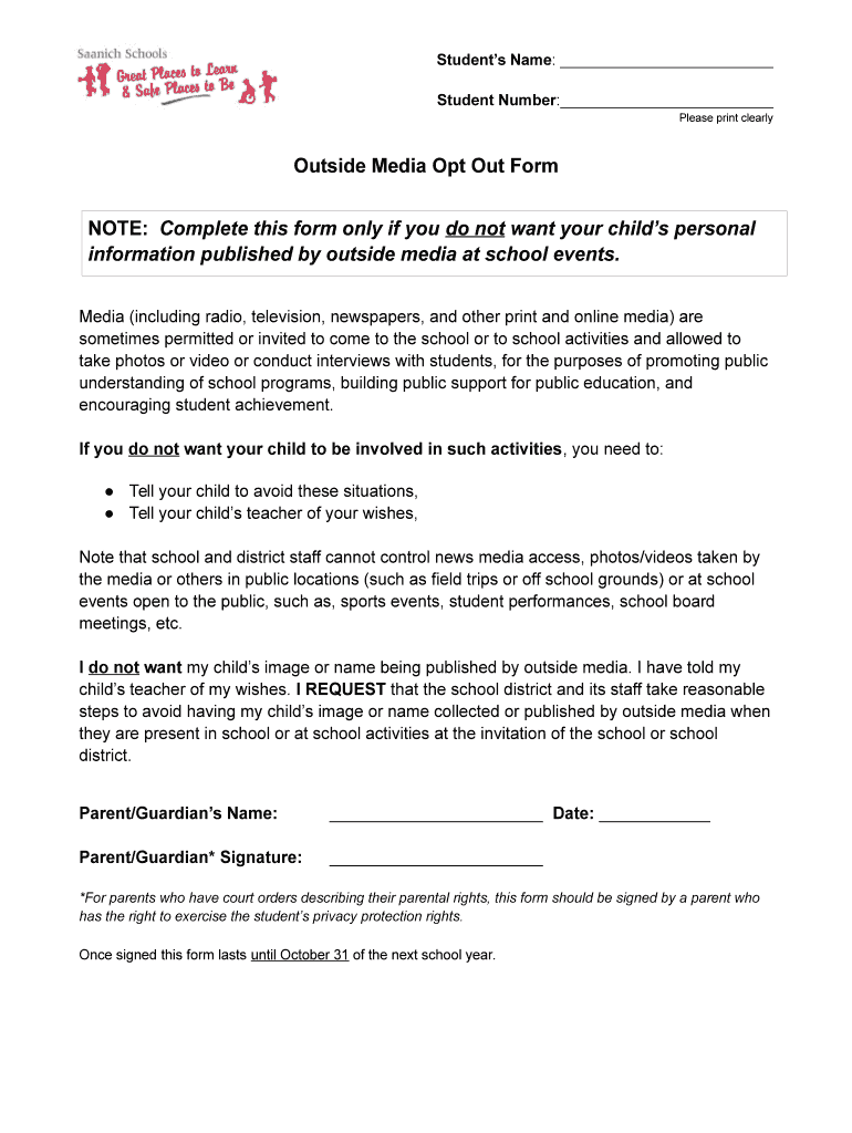 Get the free Outside Media Opt Out Form NOTE Complete this form only