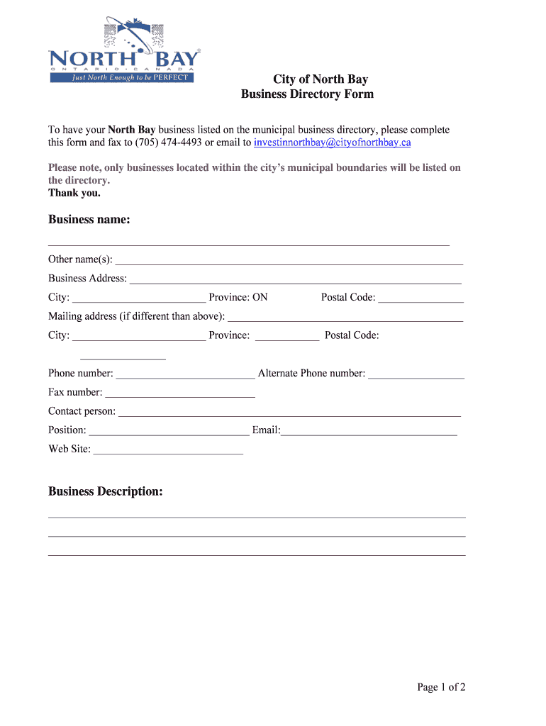 To have your North Bay business listed on the municipal business directory, please complete this form.