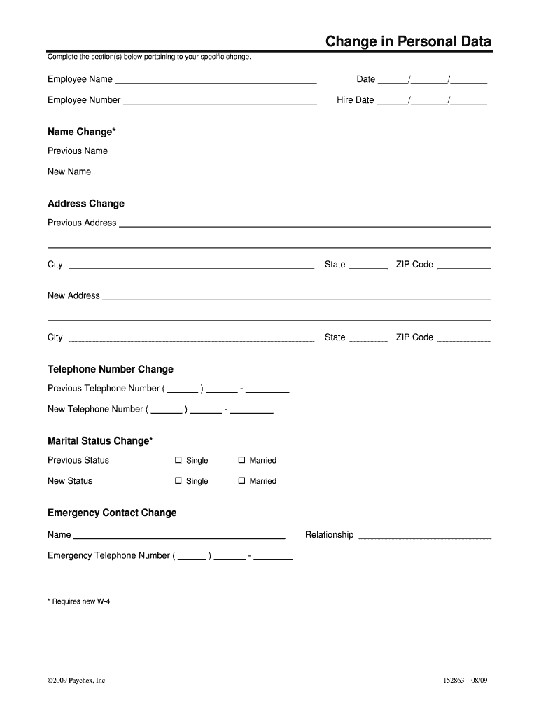 2009 Patches, Inc 152863 08×09 Change in Personal Data Complete the section’s) below pertaining to your specific change. Employee Name Date / /