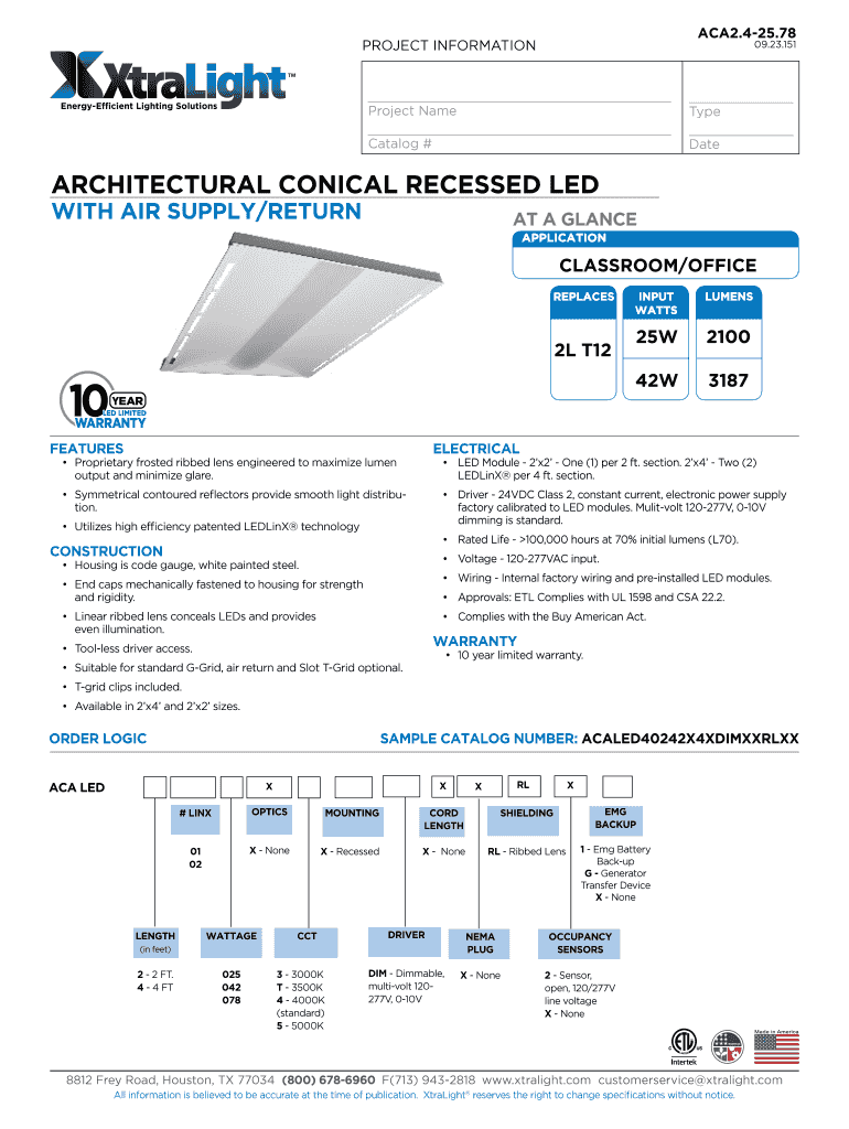 To fill out architectural conical recessed LED, you need to provide information about the installation location, specifications of the LED fixture, and any maintenance records.