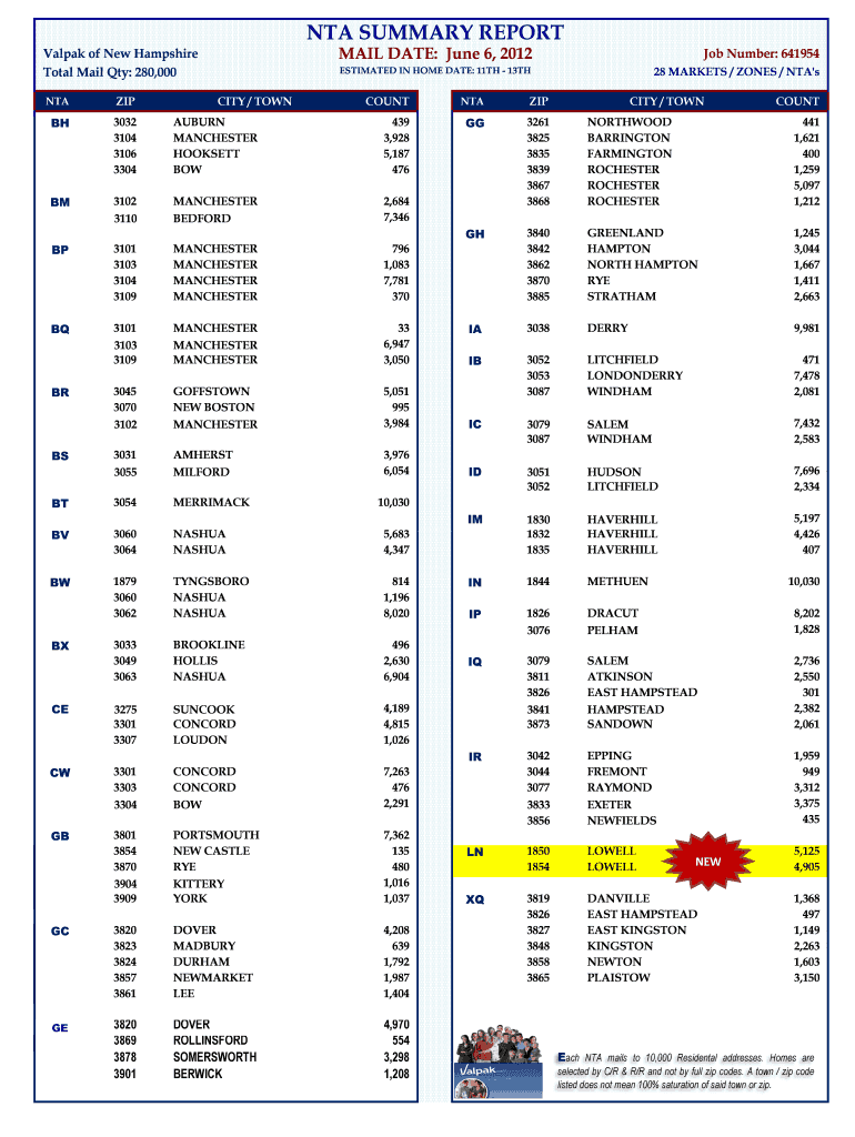 Get the free NTA SUMMARY REPORT MAIL DATE June 6 2012 Job Number 641954