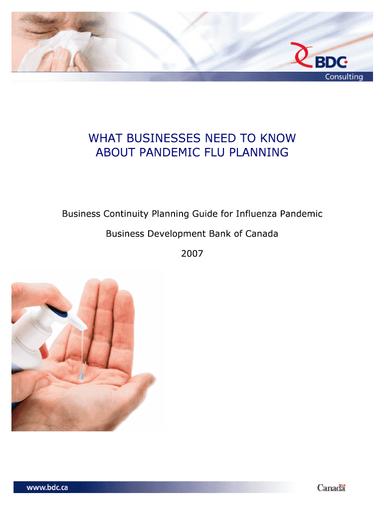 WHAT BUSINESSES NEED TO KNOW ABOUT PANDEMIC FLU PLANNING Business Continuity Planning Guide for Influenza Pandemic Business Development Bank of Canada 2007 Business Continuity Planning Guide for Influenza