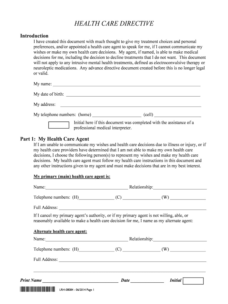 Get the free Health Care Directive combined - Lake Region Healthcare - lrhc