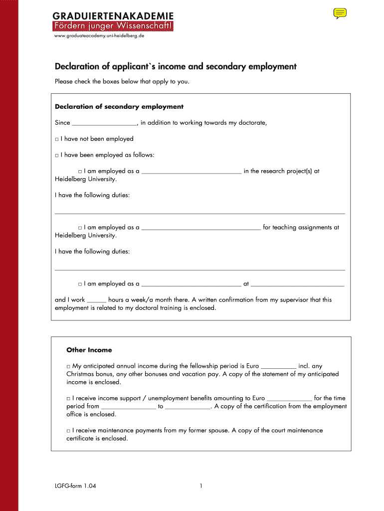 Get the free Declaration of applicants income and secondary employment - graduateacademy uni-heid...