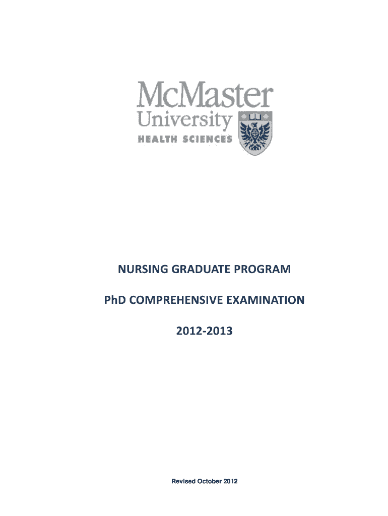 Get the free Nursing Graduate Program PhD Comprehensive Examination - fhs mcmaster