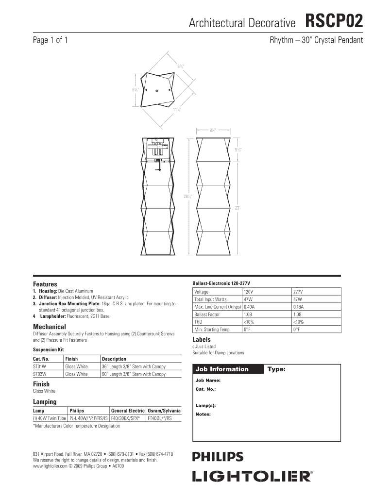 Architectural Decorative Page 1 of 1 Rhythm 30 Crystal Pendant 9 78 8 38 11 78 8 38 5 34 28 78 23 Features BallastElectronic 120277V 1. Housing: Die Cast Aluminum 2. Diffuser: Injection Molded, UV