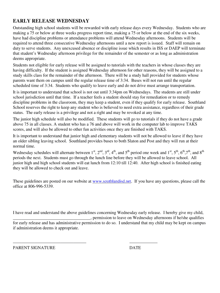 How to fill out early release wednesday?