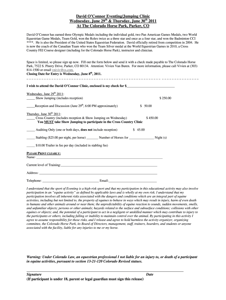 How to fill out david oconnor eventing clinic