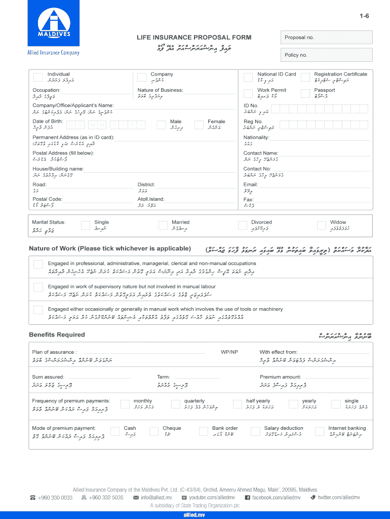 Fill out your life insurance proposal form online with pdfFiller!