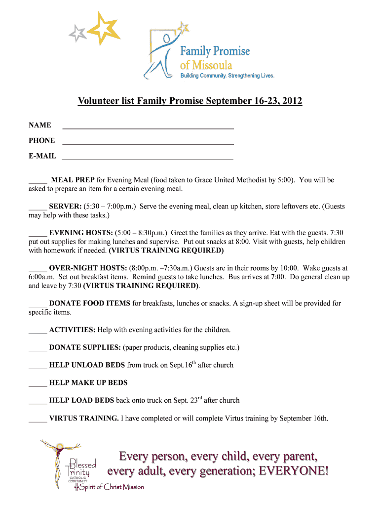 Get the free Volunteer list Family Promise September 16-23 2012 - blessedtrinitymissoula
