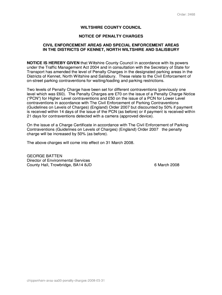 Get the free NOTICE OF PENALTY CHARGES - wiltshire gov
