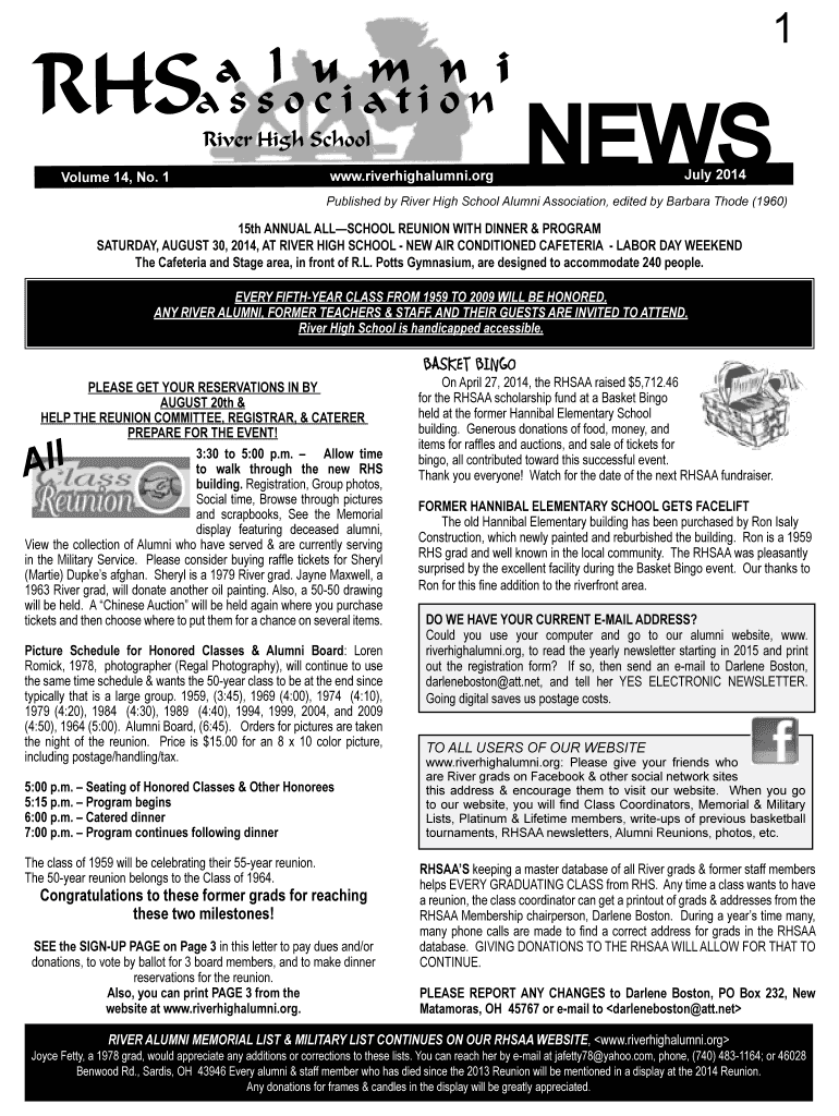 Get the free River High School - riverhighalumni