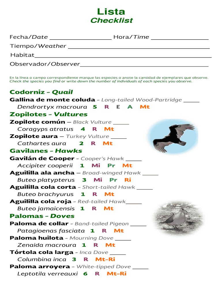 Obtener el gratis LISTA AVES DEL PARQUE NACIONAL BARRANCA DEL CUPATITZIO CHECKLIST