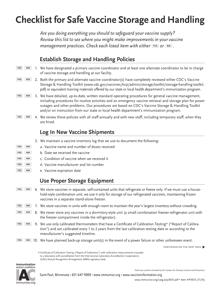 Get the free Vaccine Storage and Handling Checklist