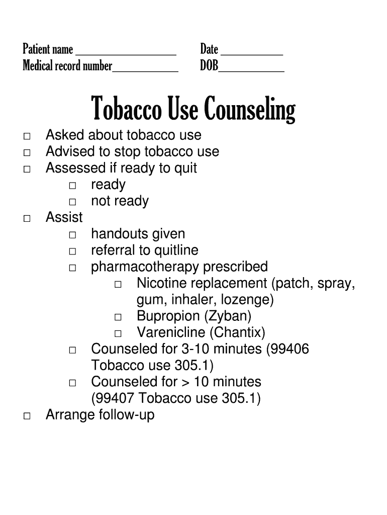 How to fill out tobacco use counseling