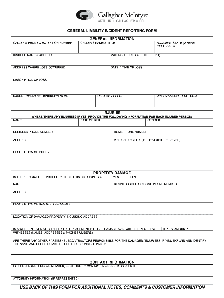 General Liability Incident Reporting is not the form you're looking for?Search for another form here.