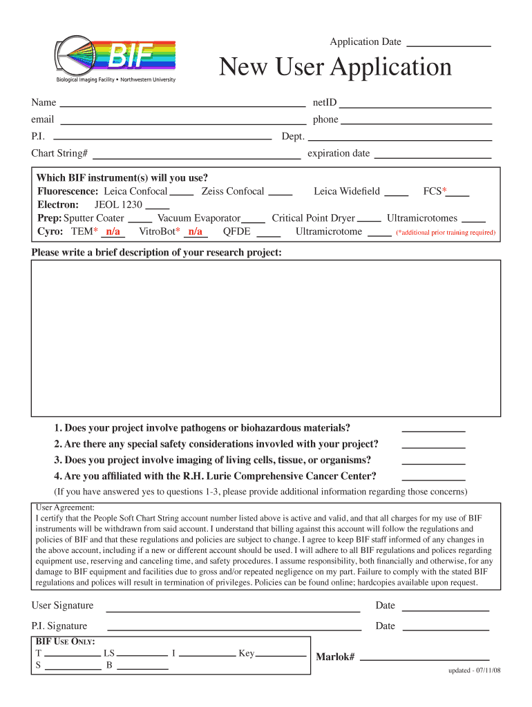 Get the free New User Application - bNorthwesternb University - bioimaging northwestern