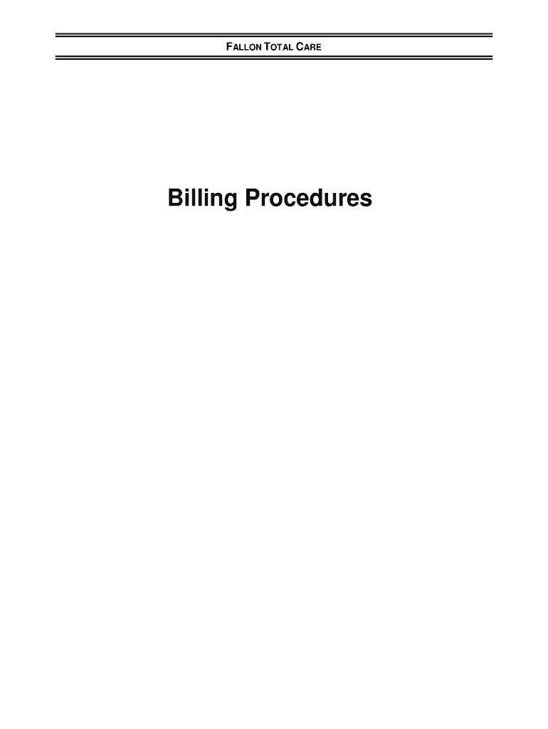 FALLON TOTAL CARE Billing Procedures TABLE OF CONTENTS BILLING PROCEDURES 1. Introduction 2. Fallon Total Cares (FTC) commitment to quality (a) Claims department quality audits (b) Claim Code Auditing