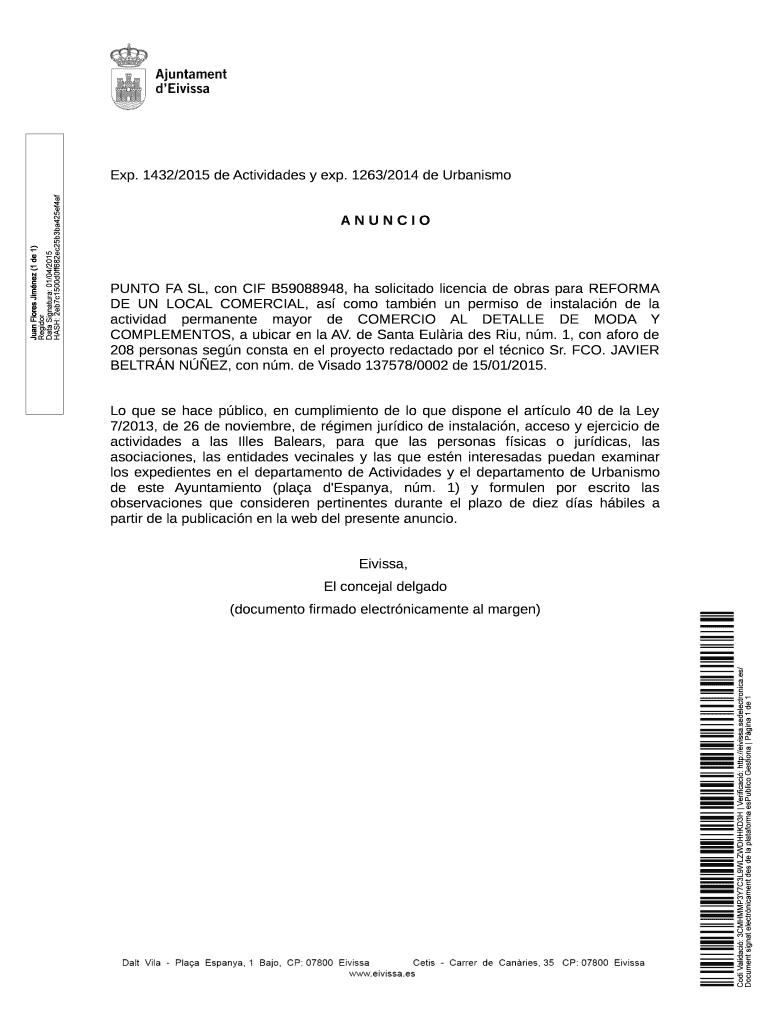 Obtener el gratis Anuncio oficial en pdf - 'Ajuntament d'Eivissa - eivissa