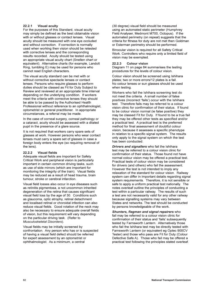 Get the free National Standard for Health Assessment of Rail Safety Workers, Volume 2 - tmr qld gov