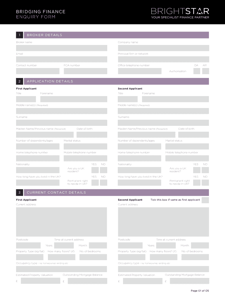Get the free BRIDGING FINANCE Development Finance Enquiry Form ENQUIRY - brightstarhub co