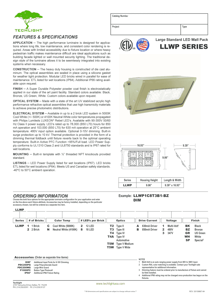 Fill out your techlight features specifications large online with pdfFiller!