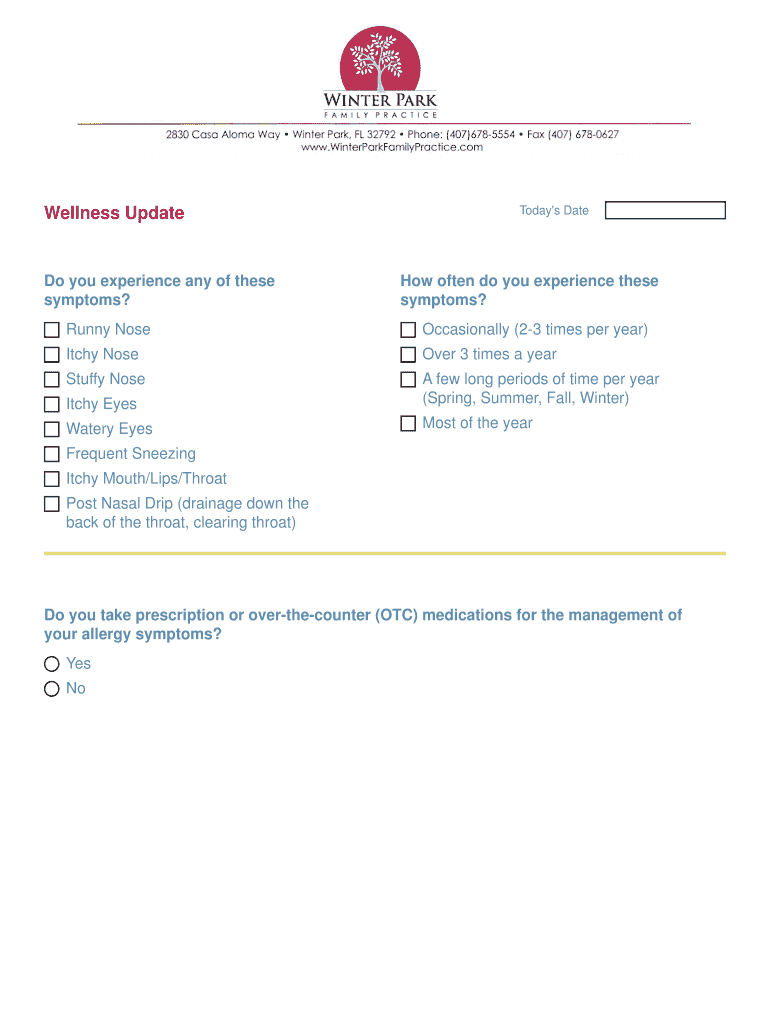 Get the free Wellness Form - Winter Park Family Practice