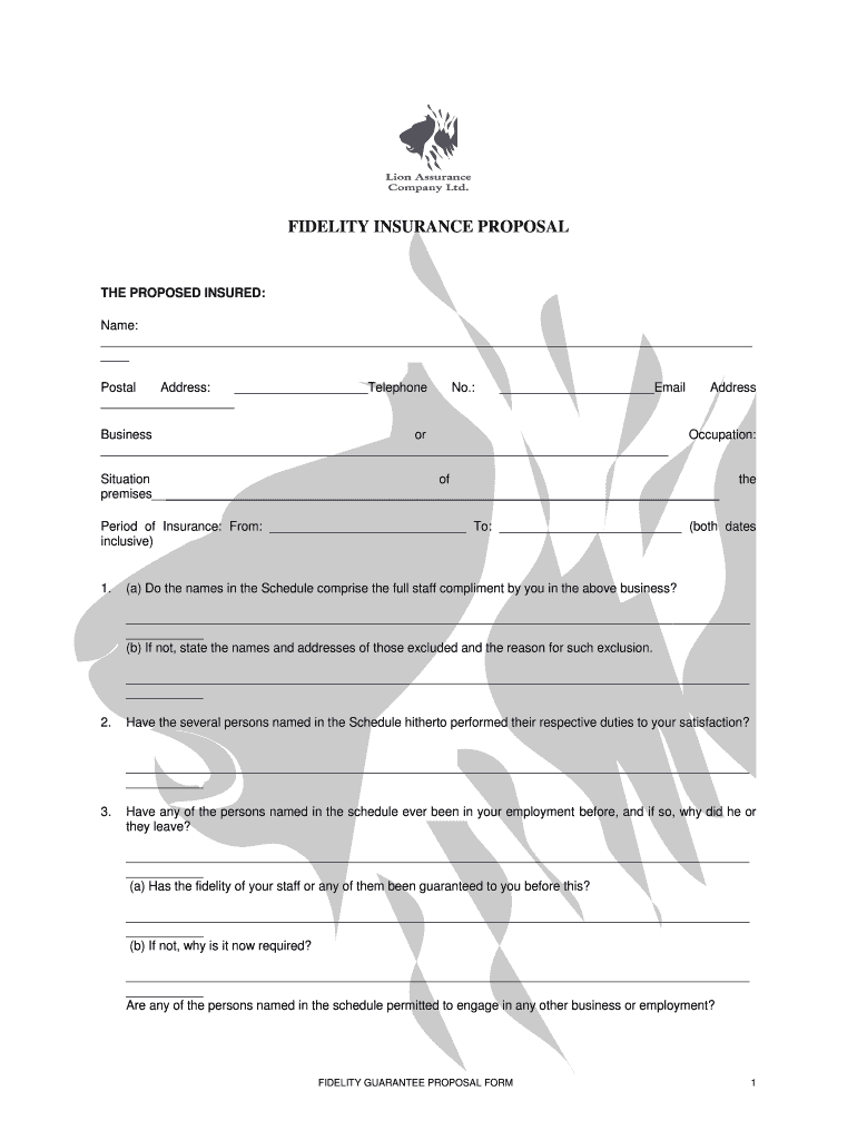 Get the free FIDELITY INSURANCE PROPOSAL - bLionb Assurance Insurance - lion co