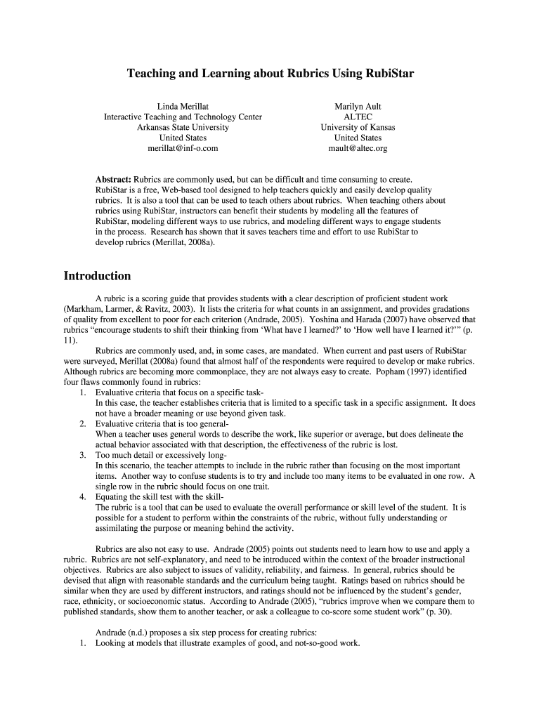 Get the free Teaching and Learning about Rubrics Using RubiStar