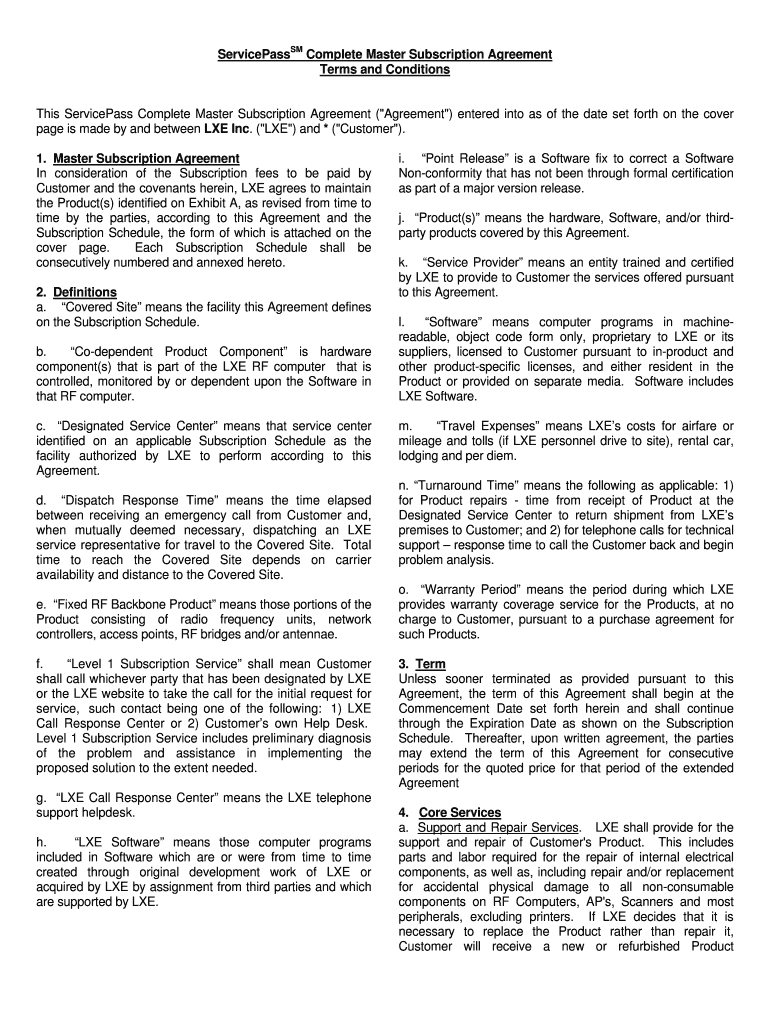 Get the free ServicePassSM Complete Master Subscription Agreement