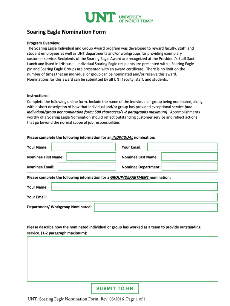 Get the free Soaring bEagleb Nomination bFormb