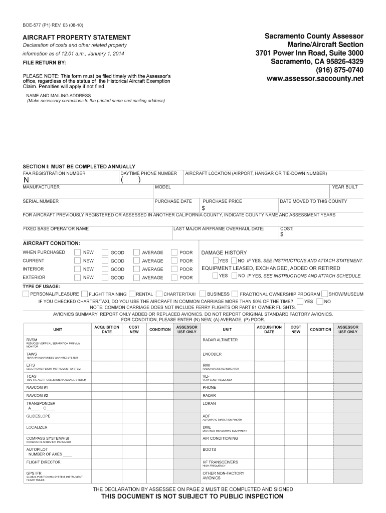 How to fill out the california aircraft property statement
