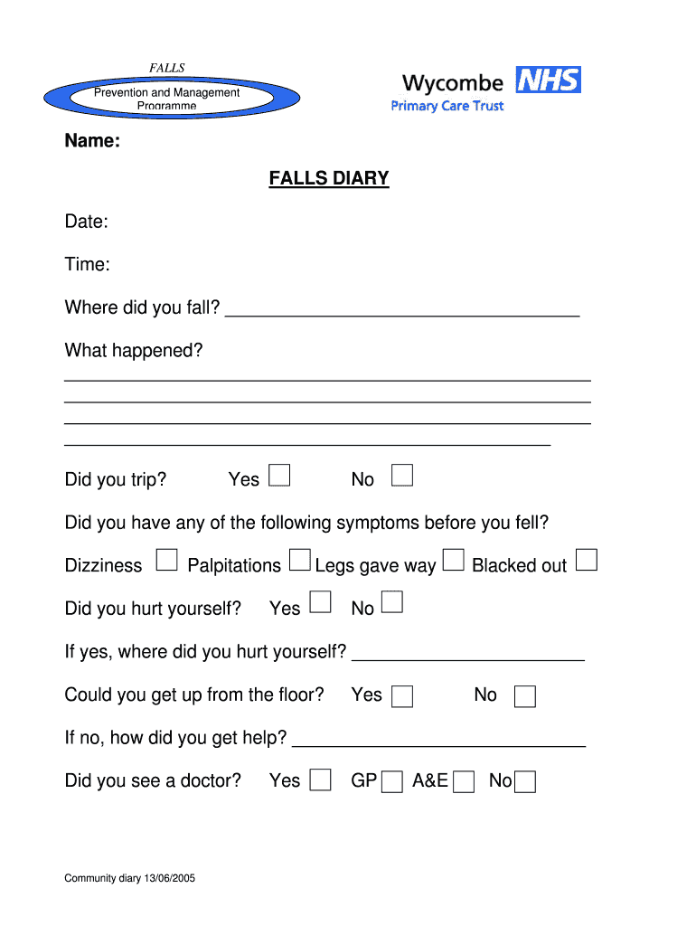 Get the free Name FALLS DIARY - bbuckinghamshirefallspreventionbbcobbukb - buckinghamshirefallspr...
