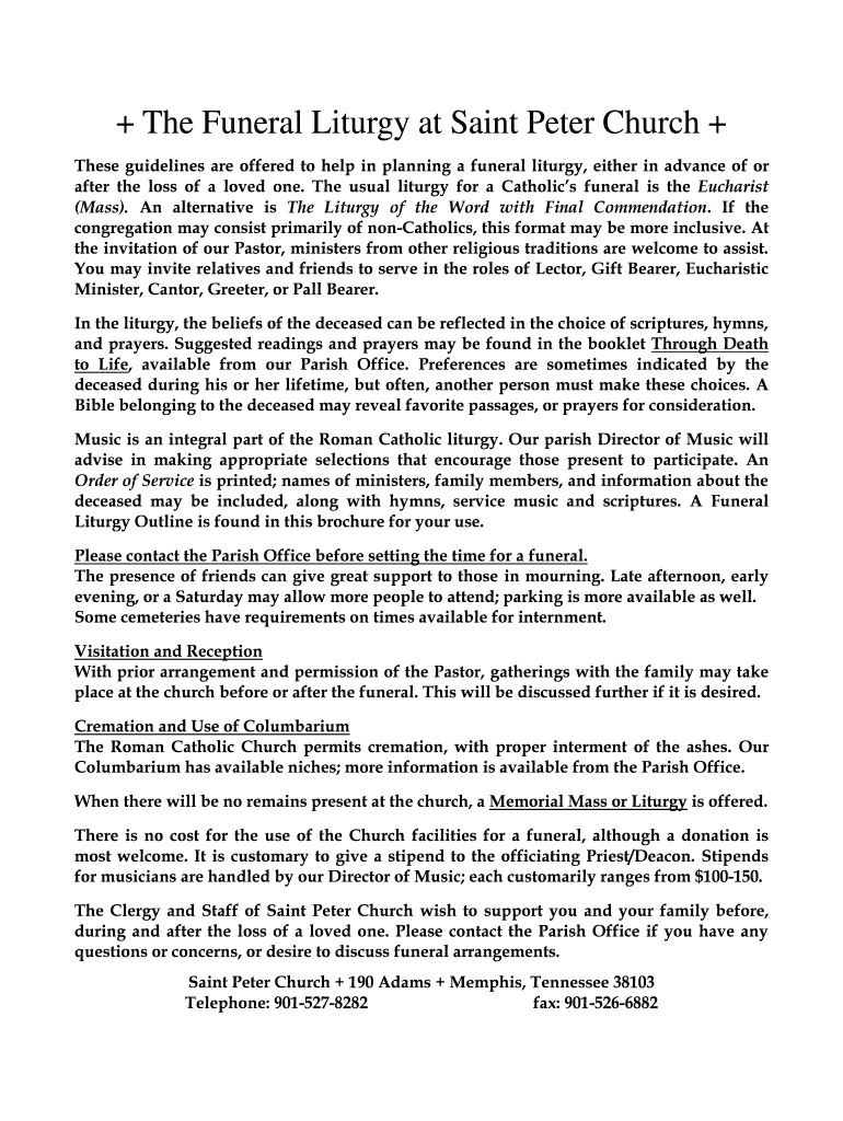 These guidelines are offered to help in planning a funeral liturgy, either in advance of or