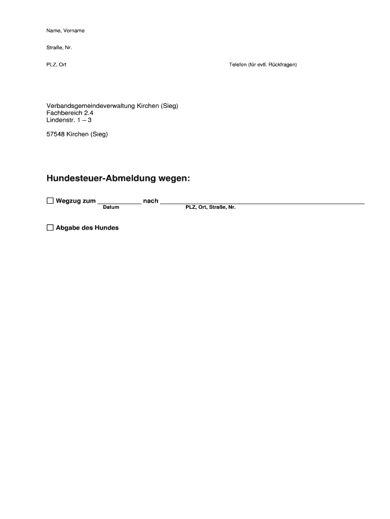 Holen Sie sich kostenlos Name, Vorname Strae, Nr - kirchen-sieg
