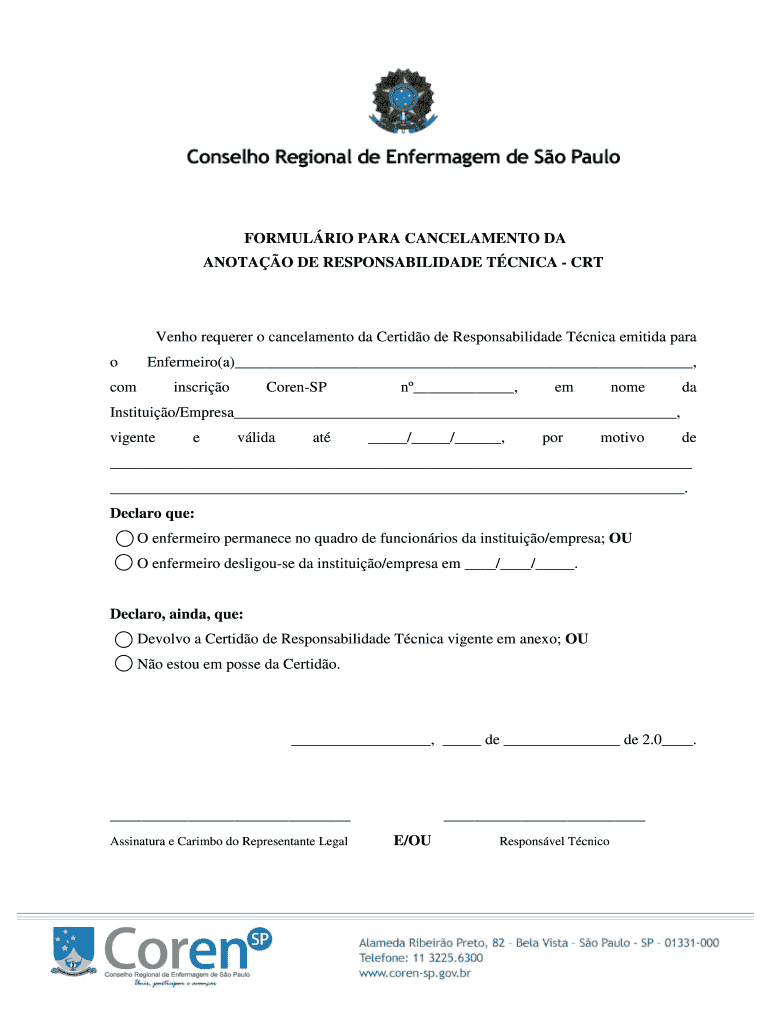 FORMULAIC PARA CANCELAMENTO DA ANO TAO DE RESPONSABILIDADE TCN ICA CRT Venlo required o concealment the Certify de Responsabilidade Tunica Emilia para o Infirmary×a), com inscribe Cores n, em Nome